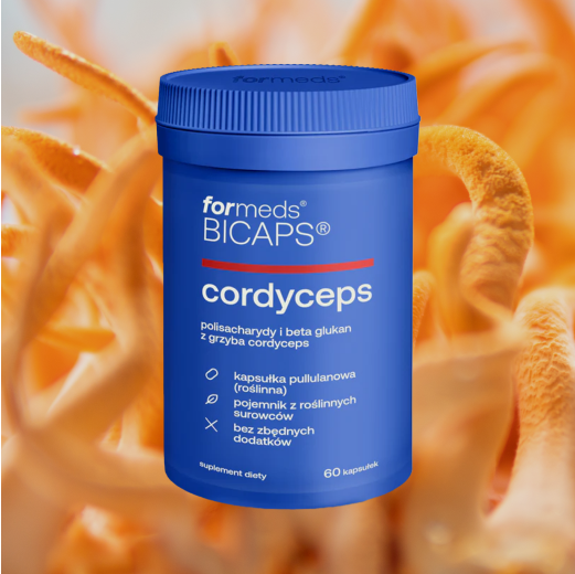 Cordyceps (Cordyceps sinesis) to ceniony grzyb adaptogenny, znany ze swojej wysokiej zawartości polisacharydów i beta-glukanu, które wspierają organizm na wielu poziomach, w tym wzmacniają układ odpornościowy. W medycynie chińskiej cordyceps wykorzystywany jest od wieków, jako środek opóźniający procesy starzenia oraz przywracający siły witalne. Może stanowić także skuteczne treningowe wsparcie dla osób, które chcą wspomóc swoją regenerację potreningową.