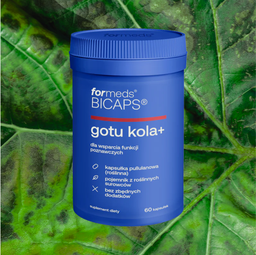 Gotu kola (Centella asiatica) to kompleksowe adaptogenne wsparcie dla sprawności umysłowej, wpływające na poprawę funkcji poznawczych, takich jak pamięć, koncentracja czy zdolność uczenia się. Lecznicze właściwości tej rośliny od stuleci wykorzystywane są w tradycyjnej medycynie ajurwedyjskiej oraz chińskiej. Dodatek cytykoliny, substancji znanej ze swoich neuroprotekcyjnych właściwości, czyni ten suplement idealnym wyborem dla osób żyjących w dużym napięciu i stresie.