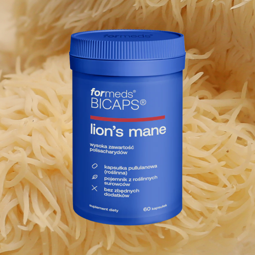 Lion’s mane (Hericium erinaceus, zwany także lwią grzywą) to adaptogenny grzyb, który jest ceniony przede wszystkim za swoje właściwości neuroprotekcyjne oraz antyoksydacyjne w mózgu. Zawdzięcza je m.in. wysokiej zawartości polisacharydów (w tym beta-glukanów). Jest powszechnie stosowany w medycynie chińskiej m.in jako wsparcie funkcjonowania układu trawiennego.