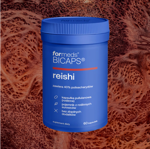Reishi (Ganoderma lucidum) to grzyb bardzo ceniony w tradycyjnej medycynie chińskiej, gdzie wykorzystywany jest jako wsparcie układu odpornościowego i krążenia. Pomaga również w walce ze stresem i w problemach z zasypianiem. Jest źródłem około 400 bioaktywnych związków, w tym kwasu ganoderowego, polisacharydów, triterpenów i steroli.