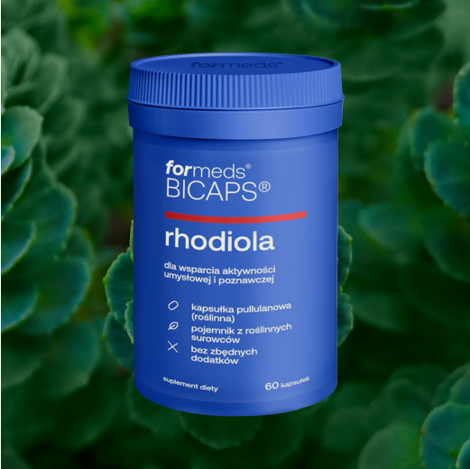 Rhodiola rosea (różeniec górski, który nazywany jest również złotym lub arktycznym korzeniem). Ten bogaty w salidrozydy oraz rozawiny adaptogen będzie cennym wsparciem dla osób, które chcą zadbać zarówno o sprawność fizyczną, jak i umysłową, zredukować stres oraz wesprzeć dobre samopoczucie na co dzień.