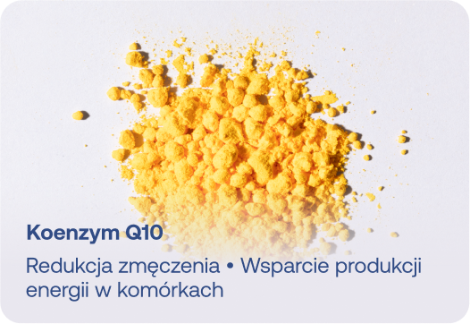 Koenzym Q10 jest niezbędny do produkcji energii w komórkach całego organizmu. Jest także ważny w kontekście metabolizmu energetycznego i przekształcania pożywienia w energię fizjologiczną. Udowodniono, że koenzym Q10 może skutecznie redukować ogólny poziom zmęczenia, (13) jak i zmęczenie związane z wysiłkiem fizycznym. (14)