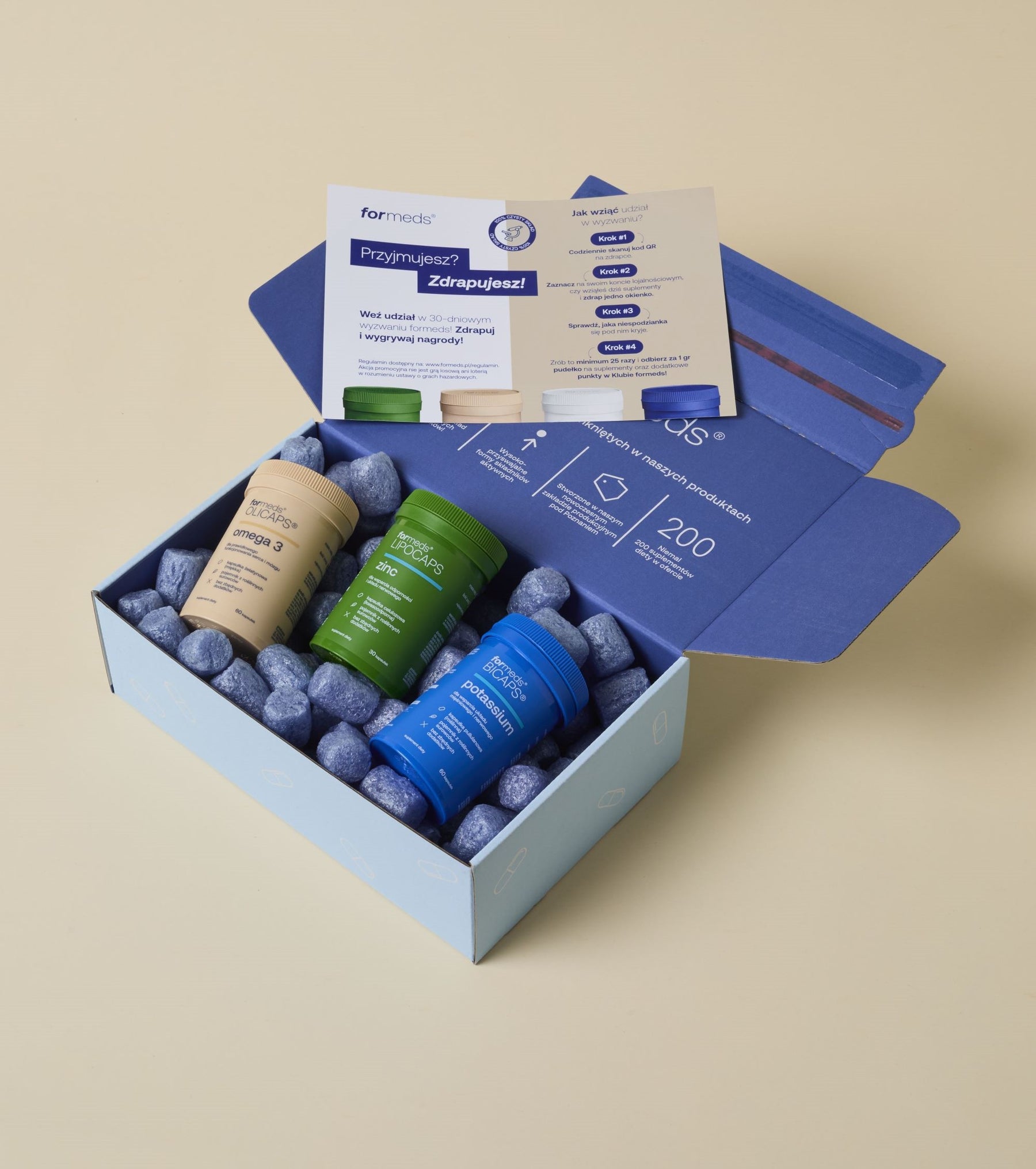 Zarejestruj się w klubie już teraz, a przy kolejnych zakupach w formeds otrzymasz od nas specjalną zdrapkę, która pomoże Ci wyrobić nawyk regularnej suplementacji. A to nie wszystko, bo pod każdym okienkiem czeka na Ciebie porcja eksperckiej wiedzy, afirmacji lub gwarantowany prezent-niespodzianka.