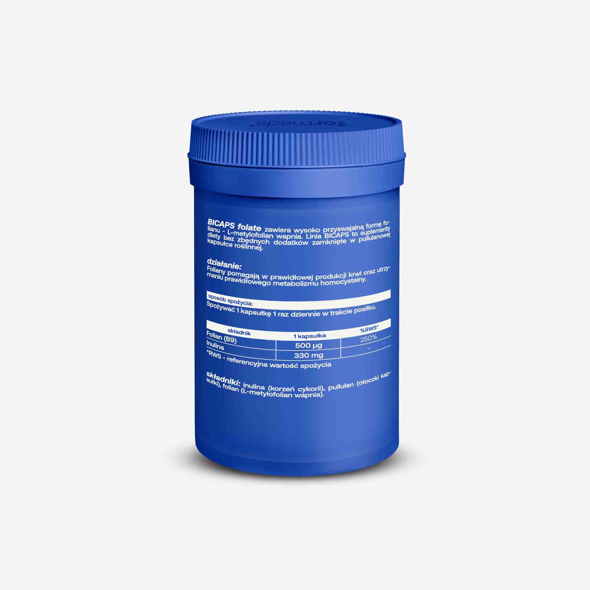 Składniki: inulina (korzeń cykorii), pullulan (otoczka kapsułki), folian (L-metylofolian wapnia).