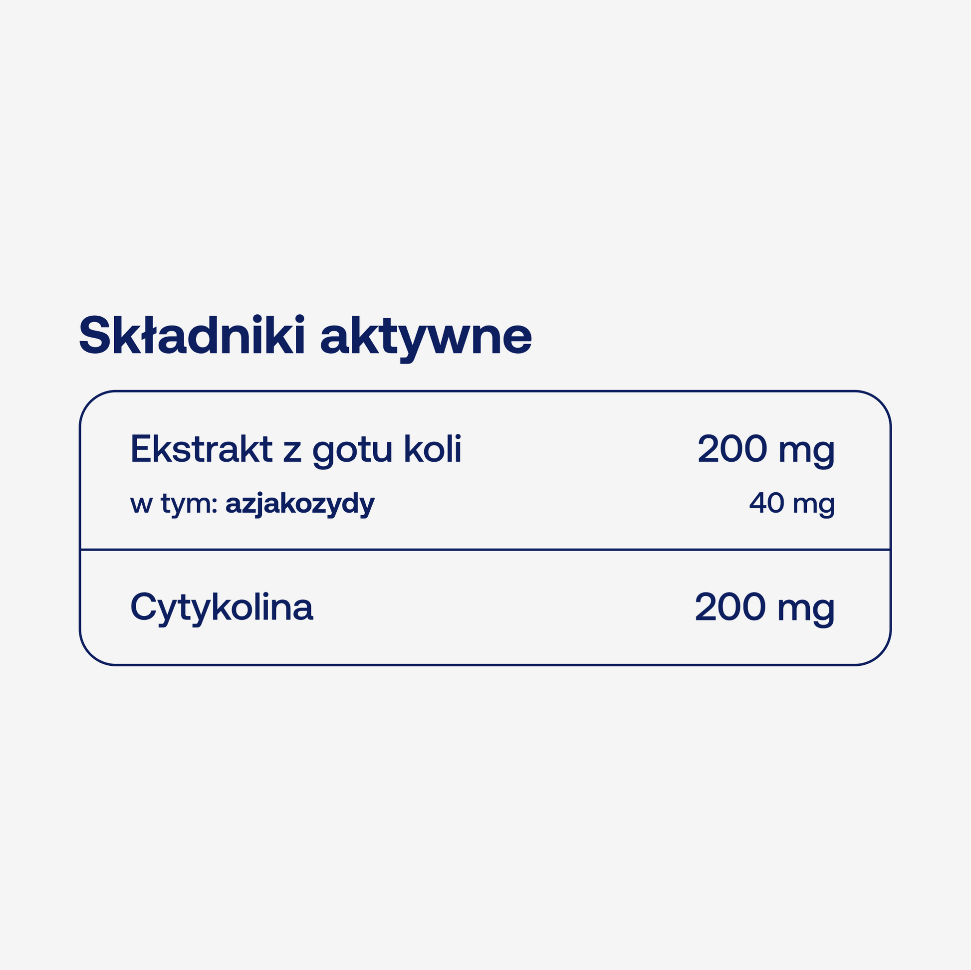 Formuła oparta na ekstrakcie z gotu koli, standaryzowanym na zawartość azjakozydów (głównych związków aktywnych tej rośliny), połączonym z cytykoliną.