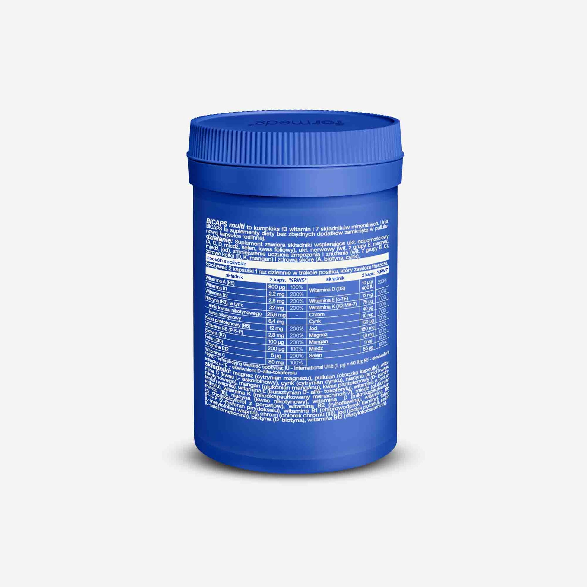 BICAPS multi to kompleks 13 witamin i 7 składników mineralnych, który pokrywa dzienne zapotrzebowanie na zawarte w nim składniki.