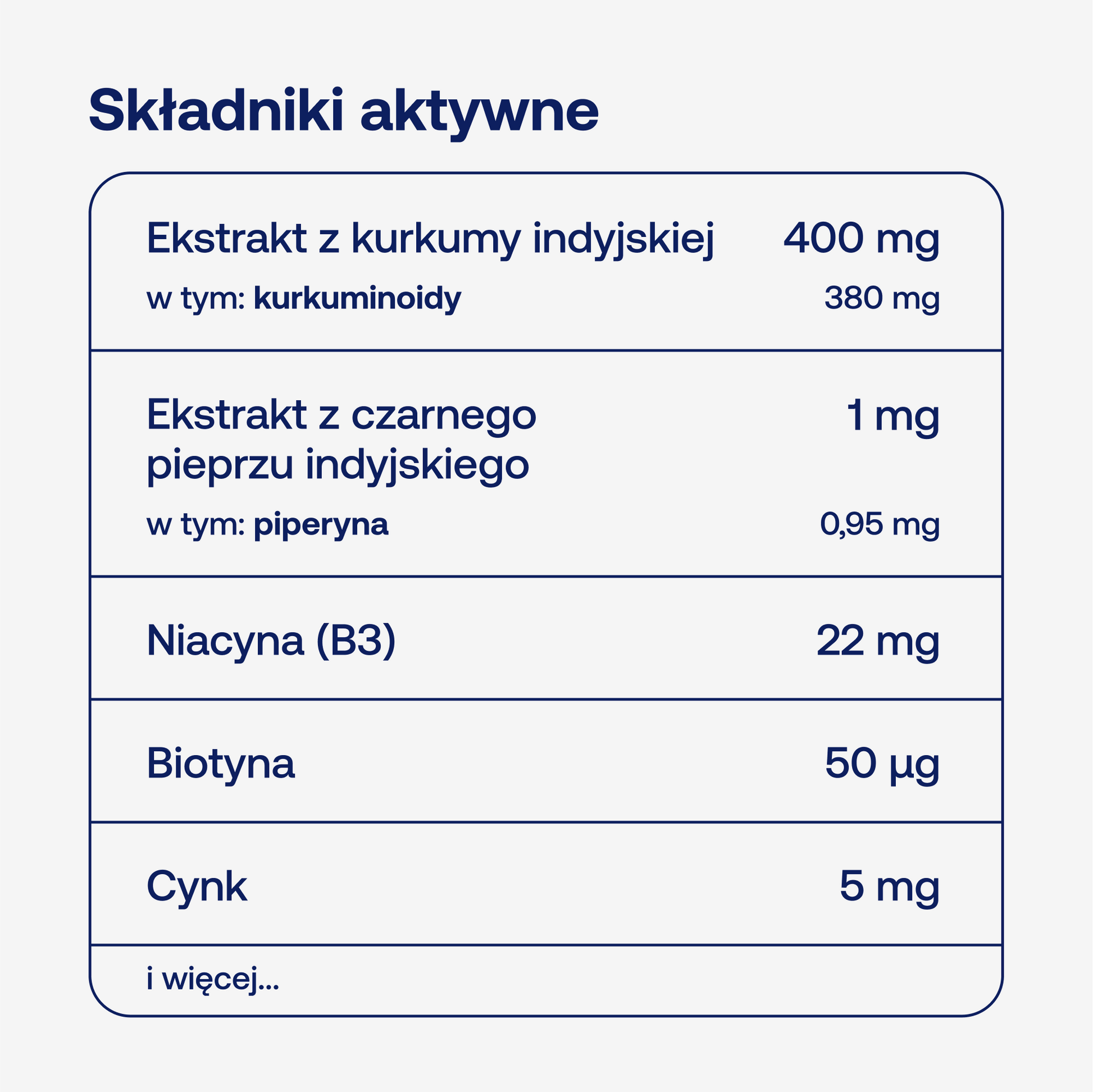 – ekstrakt z kurkumy indyjskiej – 400 mg,