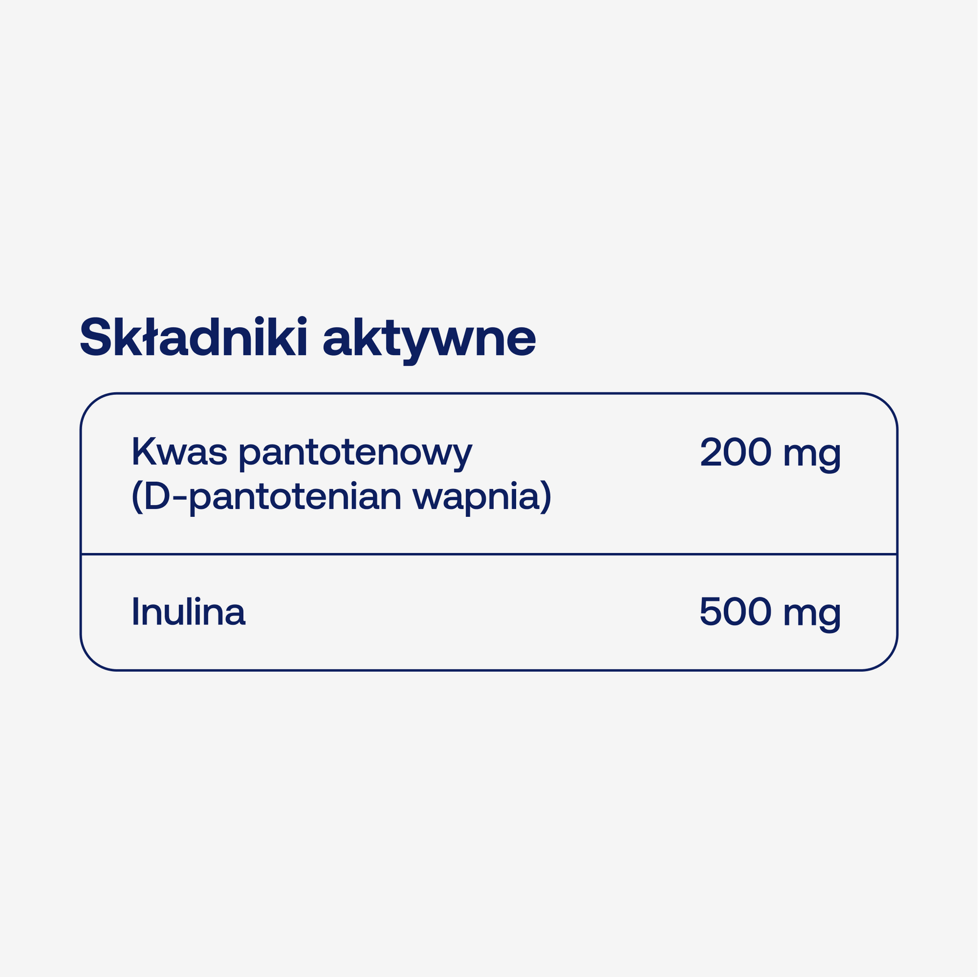 Składniki: inulina (korzeń cykorii), kwas pantotenowy (D-pantotenian wapnia).