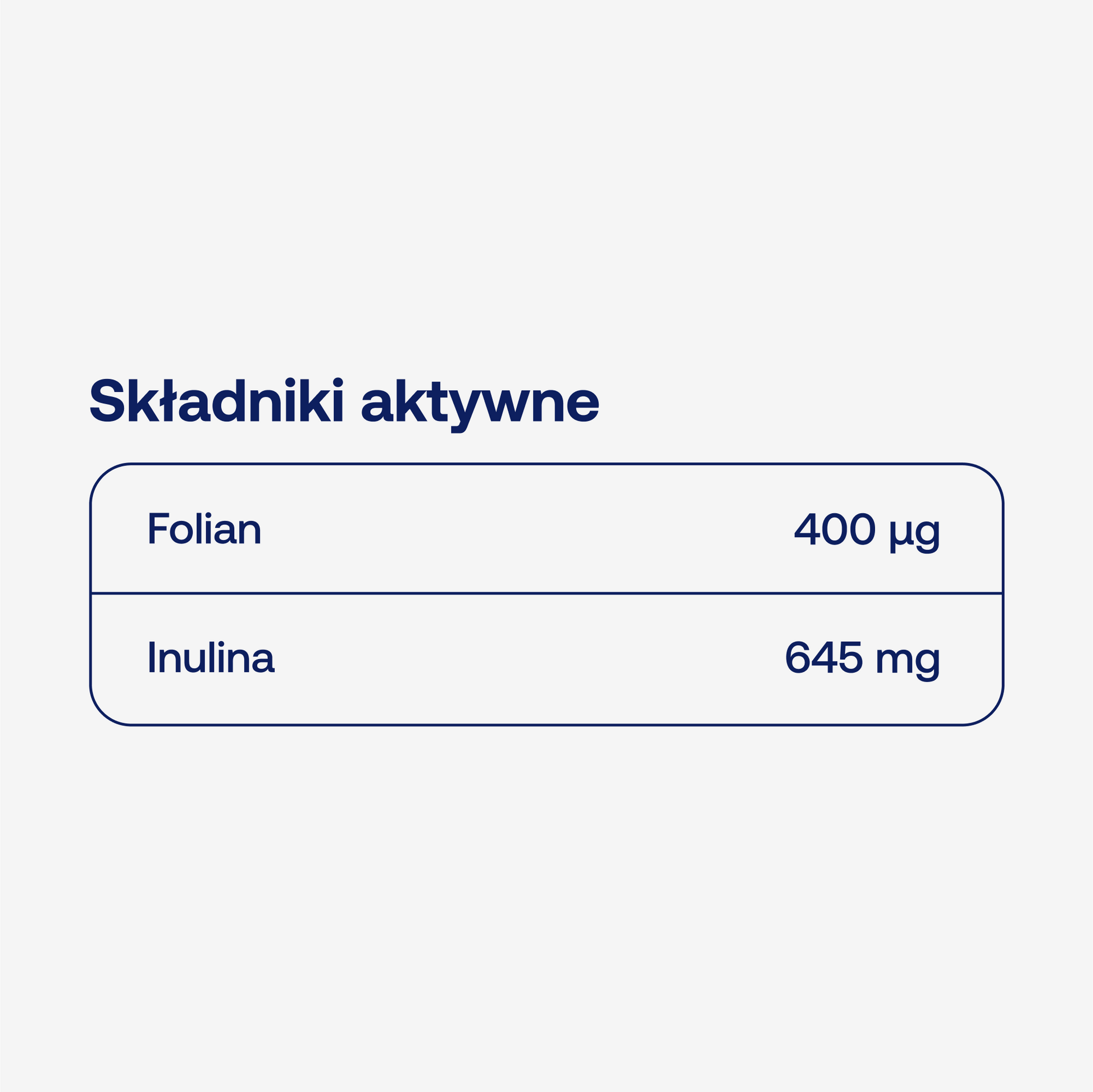 Składniki: inulina (korzeń cykorii), folian (L-metylofolian wapnia).