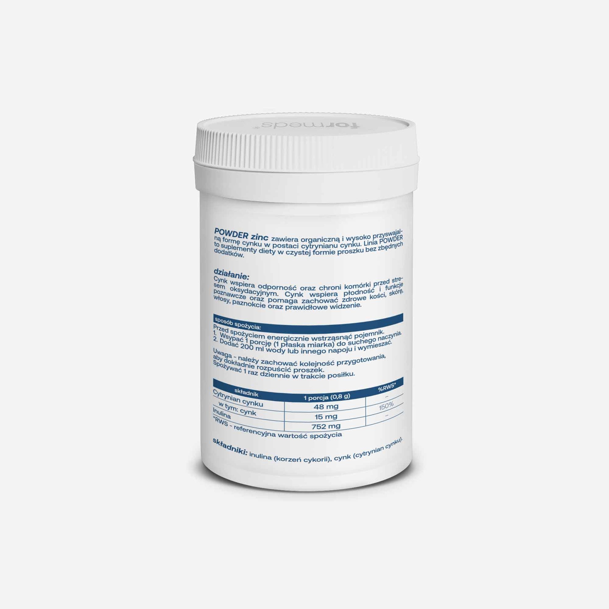 POWDER zinc to produkt zawierający, oprócz cynku, również inulinę, która wykazuje działanie prebiotyczne.