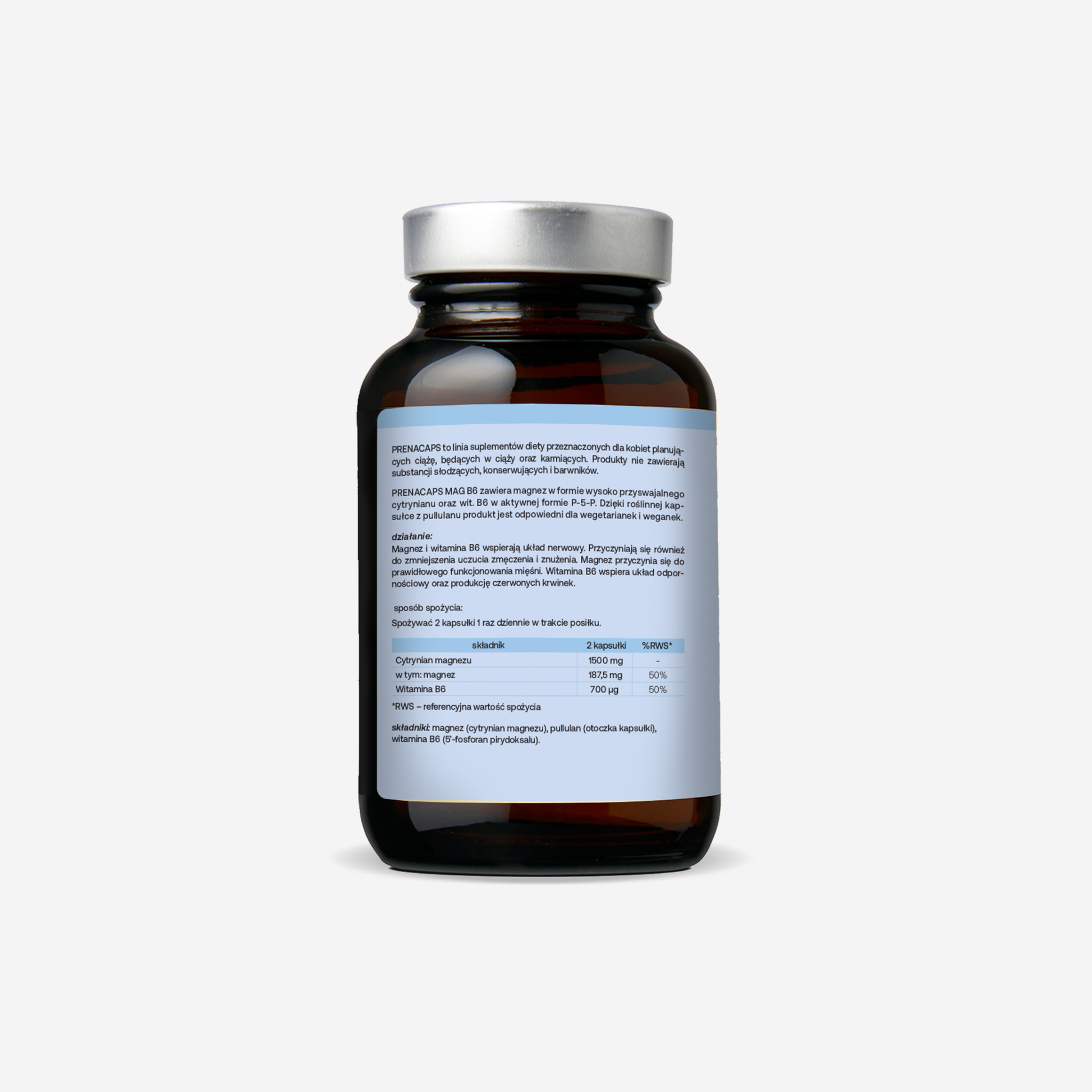 PRENACAPS mag B6 zawiera wysoko przyswajalną formę magnezu w formie organicznego cytrynianu.