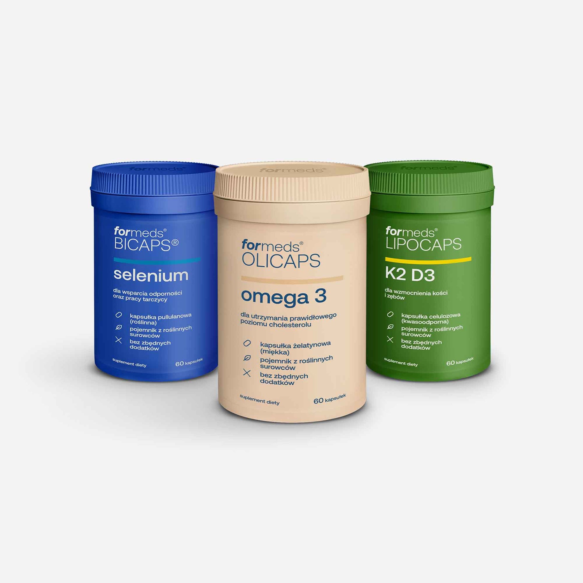 Od jej prawidłowego funkcjonowania zależy m.in. optymalna praca układu nerwowego, produkcja hormonów, perystaltyka jelit, odporność układu kostnego czy proces termogenezy. Z myślą o sprawnych tarczycach firma Formeds stworzyła zestaw 3 suplementów.